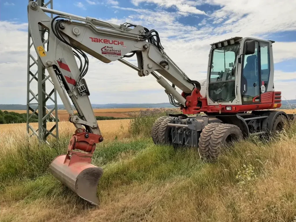 - Takeuchi TB295W – Mobilbagger, flexibel einsetzbar für Straßen- und Tiefbau.