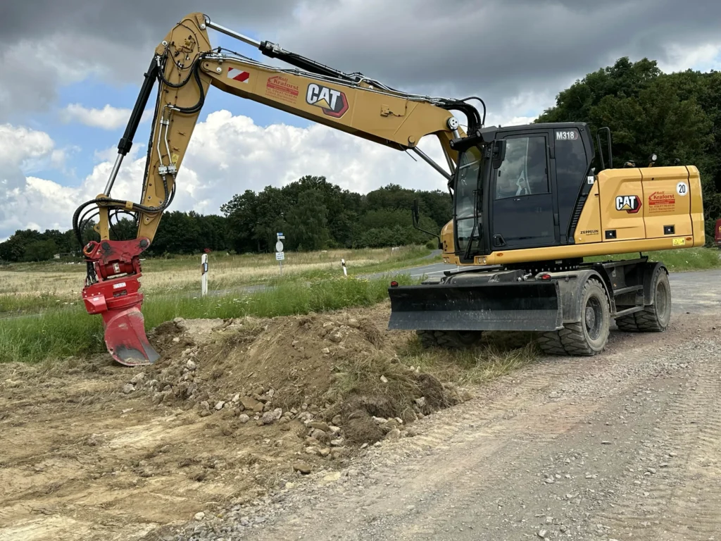 - Caterpillar M318 – Moderner Mobilbagger mit hoher Reichweite und Leistung.