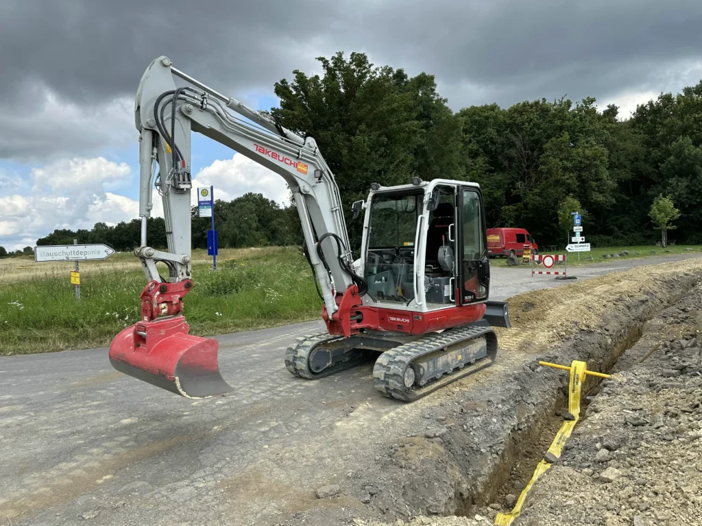 - Takeuchi TB250 – Mittlerer Kettenbagger für Tiefbau- und Aushubarbeiten.